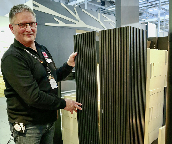 Bestandskundenpflege stand im Fokus des Messeauftritts von Ofen Innovativ. Doch es gab auch Neues zu sehen – die KSW-Speicheröfen und ein Stecksystem aus gusseisernen „Planken“, mit denen sich auch größere Anlagen optisch befriedigend einkleiden lassen.
