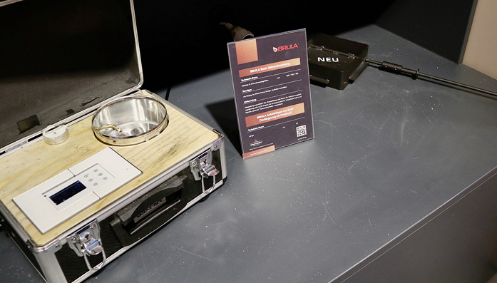 Bei den Gasgeräten hatte man den kompakten Kaminofen „Convexo“ mit energiesparender „Eco Wave“-Technologie und den gigantisch wirkenden „Maestro 75XTU Tall“ dabei. Die Kamine des Herstellers dru arbeiten nicht nur leitungsgebunden mit fossilem Erdgas, sondern auch mit Bio-Brenngasen wie Butan, Biogas oder Biopropan aus Gasflaschen. Ofenbau-Spezialist Brula hatte als Neuheiten keramische Revisionsklappen in zwei Formaten sowie die Brula Basis-Abbrandsteuerung ausgestellt.