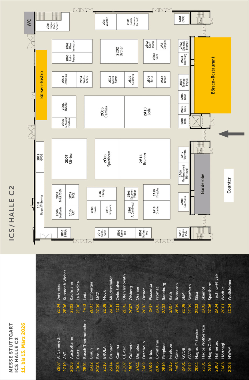 Alle namhaften Aussteller sind wieder in Stuttgart mit dabei – ein echtes Who is Who der Ofenbauer-Branche. Ein Blick auf den Hallenplan zeigt die hochkarätigen Unternehmen, die oftmals schon jahrzehntelang mit der Genossenschaft verbunden sind. Umso mehr freut sich die Hagos, dem Ofenbauer-Handwerk diese Vielfalt an Herstellern mit ihren qualitativ hochwertigen Produkten zeigen zu können.