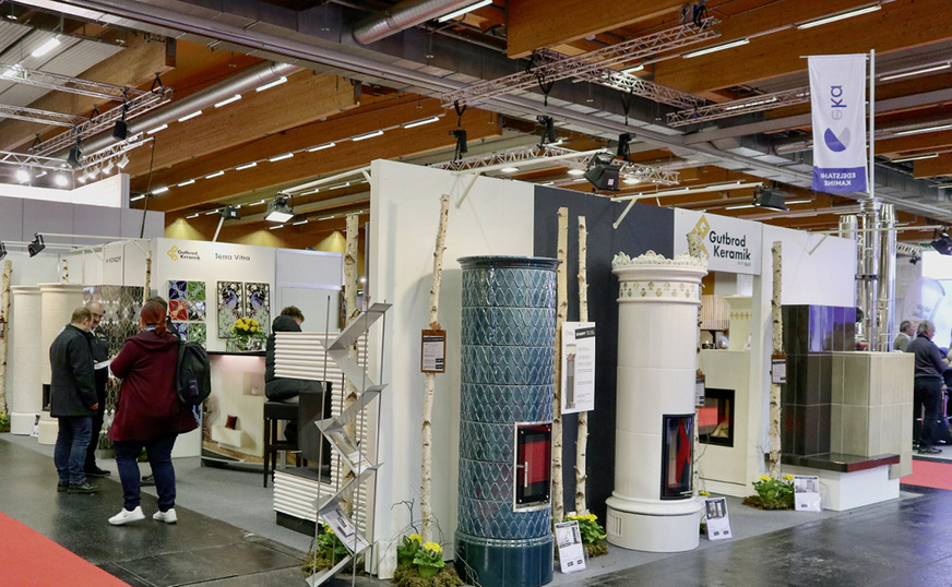 Bereits im zweiten Jahr präsentierte sich der Gundelfinger Keramikhersteller Gutbrod in Wels mit seinen elektrifizierten Kachelöfen „e-Konzept“, in diesem Jahr allerdings auch mit elektrischem Sichtfeuer, um die Stimmung eines holzbefeuerten Ofens nun auch optisch weiter zu fördern. Die Sache scheint ausbaufähig zu sein (siehe hierzu auch das Special zu Elektroöfen und -kaminen in dieser K & L-Ausgabe). „Hat man uns vor einem bis zwei Jahren wegen der ersten elektrischen Kachelöfen noch vereinzelt belächelt, so können wir inzwischen eine stabil wachsende und sehr ernsthafte Nachfrage nach dieser Ofengattung verzeichnen,“ so Geschäftsführer Norbert Müller. Natürlich hatte Gutbrod mit künstlerisch anspruchsvoller Keramik in der Dekortechnik „Terra Vita“ sowie mit neuen Glasuren der Edelmatt-Serie auch im Kerngeschäft für den individuellen Kachelofenbau Neues im Köcher.