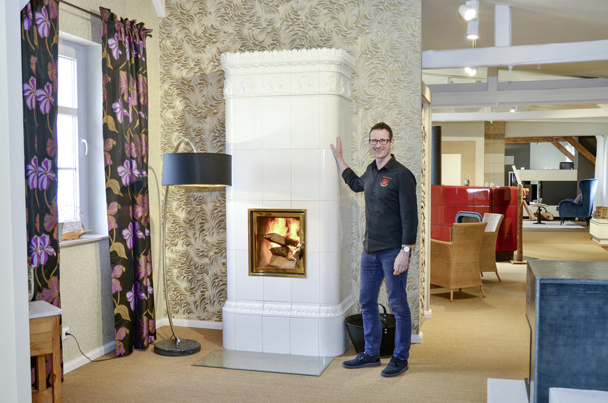 Rund 30 Kilometer nordwestlich von Dresden liegt die Kleinstadt Großenhain. Hier ist der Firmensitz eines der größten Ofenbaubetriebe der gesamten Region, der Großenhainer Ofenbauer GmbH. Zehn Mitarbeiterinnen und Mitarbeiter inklusive drei Auszubildenden sind hier beschäftigt. Das in Familienhand geführte Traditionsunternehmen besteht mittlerweile seit 60 Jahren, anfangs als kombinierter Ofenbau- und Fliesenlegerbetrieb, doch seit einem Jahr setzt Inhaber Hendrik Schütze den Fokus voll auf den Bereich Ofenbau. Von der Fliesensparte blieb der Großhandel mit Keramik für Wand und Boden, der die entsprechend spezialisierten Handwerksbetriebe mit Ware versorgt und eine Musterausstellung, die Fliesenleger auch mit ihren Kunden besuchen.