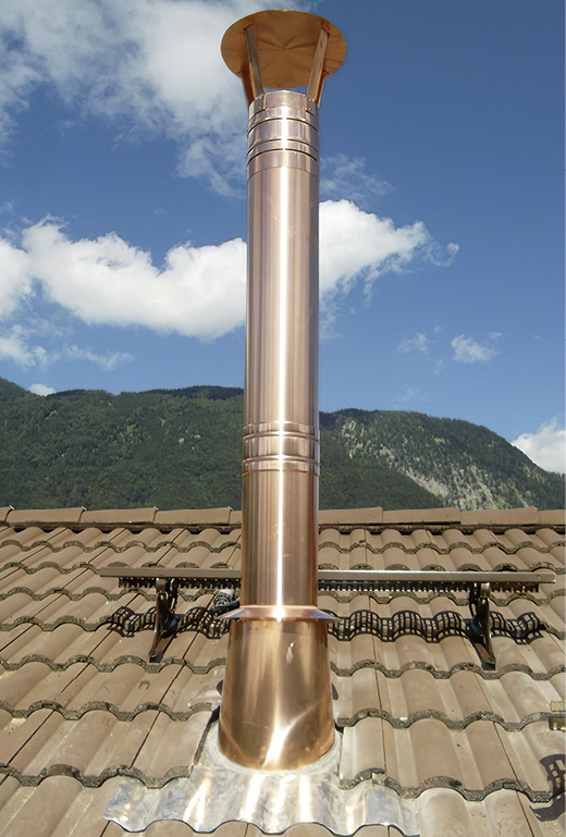 Neben seinem Standardprogramm an Edelstahlschornsteinen bietet Jeremias ein breites Sortiment an farbig pulverbeschichteten oder auch verkupferten Schornsteinsystemen an, mit denen sich an der Fassade interessante Akzente setzen lassen – oder mit denen diese optisch etwas weniger zur Geltung kommen als ein gewöhnlicher Edelstahlschornstein in seinem Silberglanz.