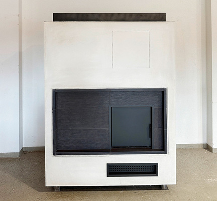 Bei einer kurzen „Auftragsbesprechung“ wurde erklärt, um was für einen Ofen es sich im Detail handelt: „Wir bauen einen Eck-LJK Speicherofen mit Durchheiztüre und PT-Wasserwärmetauscher,“ so Hubert Ziegler, „der Ofen wird mit einer internen Ofensteuerung (ORI W) und Pumpenregelung ausgestattet. Wir schließen den Wärmetauscher an einen Pufferspeicher an und machen die Erstbefüllung. Danach besprechen und zeigen wir die kombinierte Puffer-Funktion mit einem durch PV-Strom gespeisten Heizregister. Im Ofen wird ein vorkonfiguriertes Zugsystem mit Anheizklappe eingebaut, das zum Teil auch den Feuertisch erwärmt. Zum Beheizen installieren wir zusätzlich Edelstahlwellrohre auf dem gesamten Feuertisch. Ein Designanbaurahmen aus Rohstahl mit Designpaneelen (Made by OI) wird die Gestaltung bestimmen.“