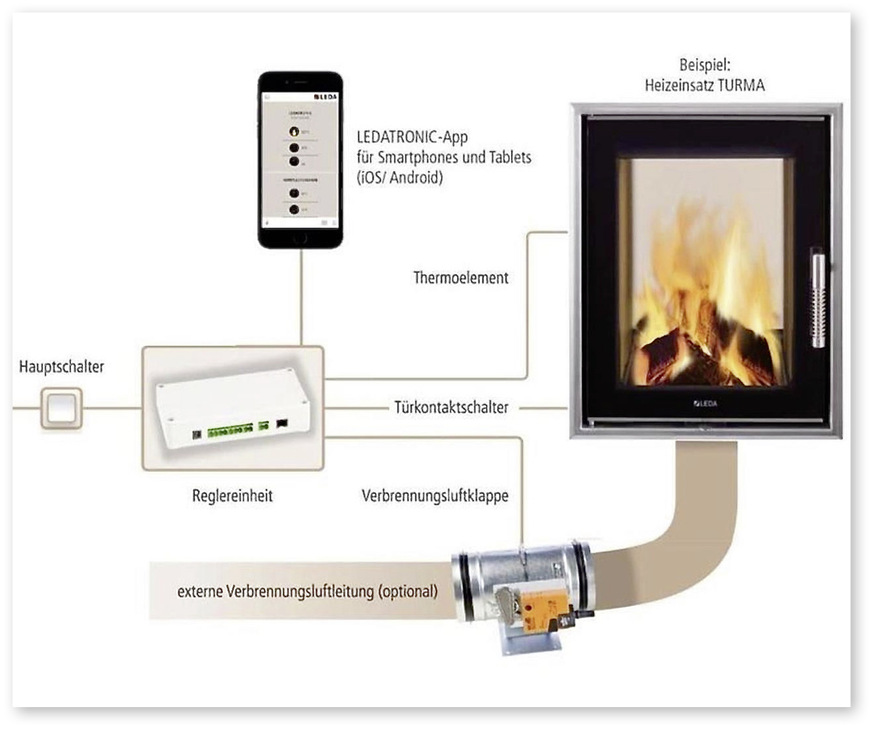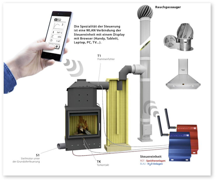 Schöne Worte. Wer sich auf die nicht verlassen möchte, zum Beispiel, weil sich mancher Altbaubesitzer, der sich eine Wärmepumpe hat einbauen lassen, mit 4,2 kW Stromleistung nicht mehr wirklich im Warmen sitzen wird, hat – wie auch schon bei drohender Gasknappheit, eigentlich nur eine Wahl: einen holzbefeuerten Ofen zu nutzen. Und den installieren Sie, der Ofenbauer! Immer mehr neue Öfen wurden allerdings in den letzten Jahren mit elektronischen Zusatzeinrichtungen ausgerüstet, manche Ofenbaubetriebe verbauen generell so gut wie keine Feuerstätte mehr ohne Regelung. Der Ofen ohne Stromanschluss scheint ein Auslaufmodell zu werden. Entscheidend für eine Funktion als Notheizung ist dann, dass der Ofen auch bei Ausfall der Elektrik weiter betreibbar ist. Wir haben uns bei den Herstellern erkundigt und können als schnelle Antwort vorweg sagen, dass das tatsächlich in den meisten Fällen möglich ist. Schwierig wird es nach Auskunft der befragten Unternehmen eigentlich nur bei wasserführenden Feuerstätten, die für die Funktion dringend eine Umwälzpumpe benötigen, und bei Pelletöfen mit elektronischer Zündung. Aber auch dafür gibt es Lösungen, wie wir weiter unten noch zeigen. In den meisten neueren Öfen kommen Abbrandsteuerungen zum Einsatz, die die Zuluft bedarfsgerecht dosieren. Vermehrt werden Öfen auch mit elektrostatischen Staubabscheidern oder Rauchsaugern ausgestattet – speziell für neue Kaminöfen mit dem Umweltzeichen „Blauer Engel“ sind elektronische Hilfseinrichtungen eine Voraussetzung, um das Siegel zu bekommen.