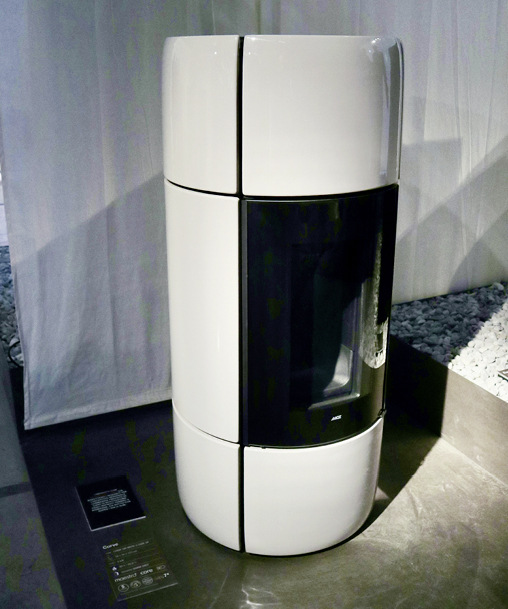 Eine besonders interessante Hybridlösung eines keramikverkleideten Speicher-Kaminofens präsentierte Cerampiu auf der Messe. Alternativ zum Holzfeuer kann der Ofen nämlich auch über eine Elektroheizung angenehme Strahlungswärme erzeugen.