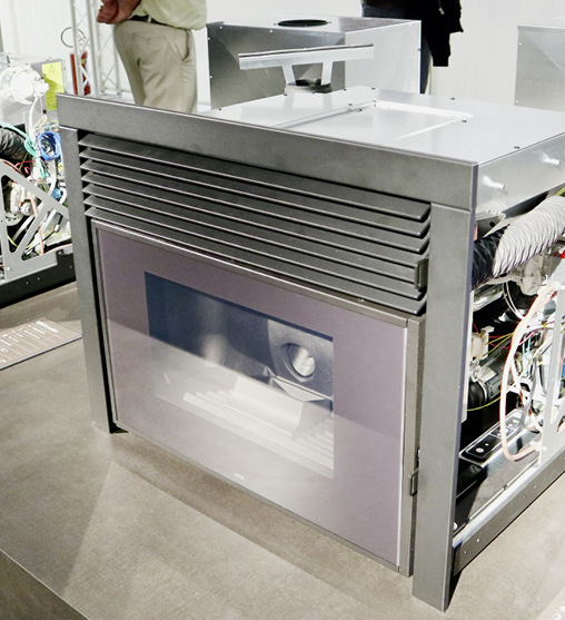 Bei Camina & Schmid stand die Erweiterung der Ekko-„evo“-Familie im Vordergrund. Dabei handelt es sich um völlig neu konzipierte Kamineinsätze, die nicht nur mit einer überragenden Effizienz (85 Prozent), sondern dank optional einsetzbarer Katalysator-Platten auch mit extrem geringen Schadstoffemissionen bei Feinstaubpartikeln und CO2 glänzen. Darüber hinaus wurden die Einsätze in Details wie der Türscheibenabdichtung und der Zuluft-Zuführung verbessert. Ausgestellt waren außerdem vier Prototypen der ebenfalls mit Katalysatortechnik ausgestatteten Kaso-Kaminkassetten.