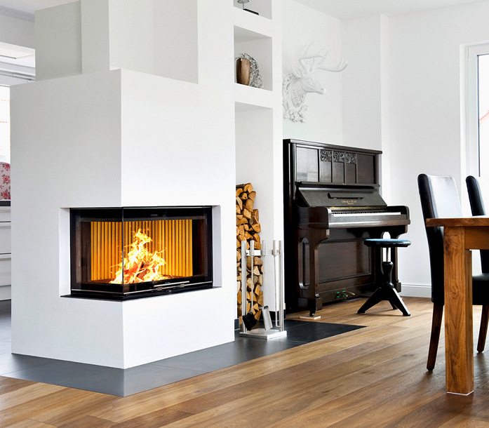 Wasserführende Scheitholzöfen und -kamine sind schon lange auf dem Markt. Sie speisen einen Teil der entstehenden Wärme in einen Pufferspeicher ein und unterstützen so die Zentralheizung, der andere Teil wird als Strahlungswärme an den Aufstellraum abgegeben. Käufer, die sich für eine solche Lösung entschieden, hatten eigentlich schon immer mehr als ein reines „Komfortfeuer“ im Sinn und waren deshalb auch bereit, die nicht unerheblichen Mehrkosten für eine solche Lösung zu investieren. Mit großer Sichtscheibe ausgestattet, können wasserführende Kamine trotzdem auch den Anspruch an gemütlichen Feuerschein im Heim erfüllen.