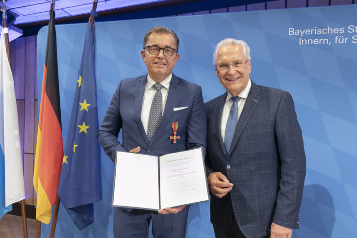 Seit 2018 bekleidet er das Amt des Präsidenten des ZVSHK. Hier hat er zuletzt sehr vehement die Interessen der 49.000 SHK-Betriebe in Deutschland im politischen Ringen um das sogenannte „Heizungsgesetz“ vertreten. In seiner Laudatio zur Ordensverleihung würdigte Staatsminister Herrmann unter anderem die zupackende und lösungsorientierte Art von Michael Hilpert, an Probleme heranzugehen, neue und innovative Themen im Interesse der gesamten Handwerkerschaft anzuregen und die Anliegen des Handwerks in Öffentlichkeit und Politik zu vertreten. Für Michael Hilpert persönlich ist die Auszeichnung mehr als eine Bestätigung seines ehrenamtlichen Wirkens im Dienst des SHK-Handwerks. „Die Auszeichnung mit dem Bundesverdienstkreuz ist für mich schon etwas ganz Besonderes. Mein persönlicher Einsatz für ‚mein‘ SHK-Handwerk, ob in der Innung, dem Landesverband Bayern oder auch jetzt im Zentralverband war und ist für mich zwar eine Selbstverständlichkeit. Aber es macht mich auch schon ein kleinwenig stolz, wenn dieses Engagement öffentlich so gewürdigt wird. Und es ist für mich natürlich auch Antrieb, in meinem ehrenamtlichen Engagement (vor allem für unser Handwerk) nicht nachzulassen.“