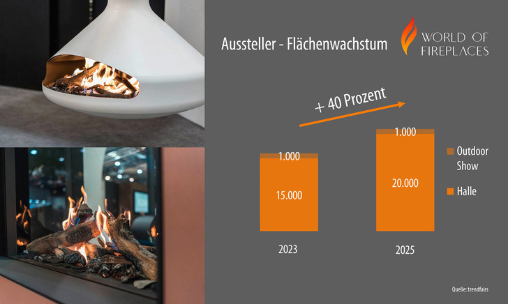 Die Vorbereitungen des Messeveranstalters Trendfairs GmbH für eine inspirierende, noch größere und internationalere Messe sind in vollem Gang. Die zweite Ausgabe der World of Fireplaces in 2025 wird, die erfolgreiche Premiere des letzten Jahres zu übertreffen. Die gesetzten Ziele des Veranstalters Trendfairs GmbH, die Internationalität der Fachmesse zu erhöhen und einen deutlichen Zuwachs an Ausstellern zu gewinnen, kann per heute bereits als ‚erreicht‘ abgehakt werden. Mit vielen Neuzugängen und der wiederholten Teilnahme nahezu aller Aussteller von 2023 wird die internationale Fachmesse für Feuerstätten in Leipzig erneut zum globalen Branchentreffpunkt. So wächst die Ausstellungsfläche im kommenden Jahr um mehr als 40 Prozent, die Anzahl der Herkunftsländer der Aussteller hat sich bereits um 20 Prozent versus 2023 erhöht.