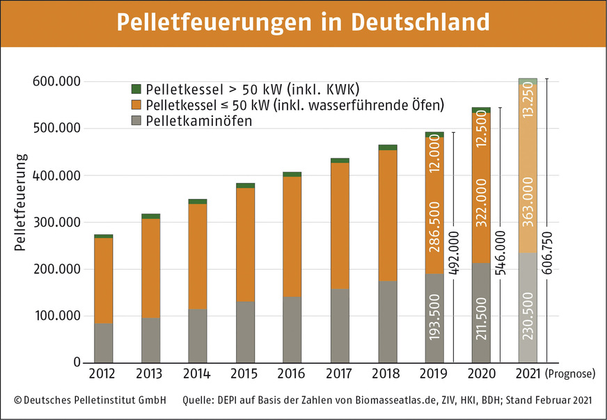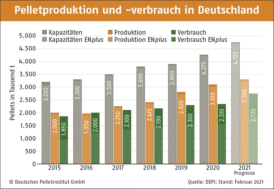 Für das Jahr 2021 rechnet der DEPV mit einer weiteren Steigerung des Absatzes und der Zunahme des Zubaus an Pelletfeuerungen um gut 10 Prozent auf rund 70.000 Anlagen (gegenüber rund 62.000 Feuerungen 2020), davon etwa ein Drittel Pelletkaminöfen. Die Versorgung mit Pellets sei aufgrund des nachhaltigen Rohstoffangebots gesichert. Weitere neue Pelletwerke sind bereits in der Planung. „Wer künftig fossile Brennstoffe ersetzen will, wird bei der Pelletheizung ausgereifte Technik kombiniert mit einem hochwertigen regionalen Brennstoff finden“, so Bentele.