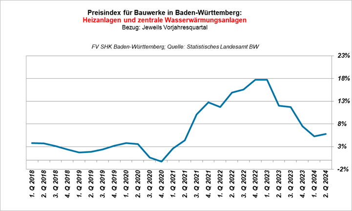 „Wir glauben nicht daran, dass die Preise für Heizungsanlagen noch einmal sinken werden“, sagt Wolfgang Becker, Hauptgeschäftsführer des Fachverbands Sanitär-Heizung-Klima Baden-Württemberg. „Im Gegenteil: Die Zahlen des statistischen Landesamts für Bauwerke zeigen, dass der Preisindex für Heizanlagen und zentrale Wassererwärmungsanlagen in den zurückliegenden 20 Jahren bis auf eine Ausnahme im ersten Corona-Winter immer Steigerungen abbildete.“
