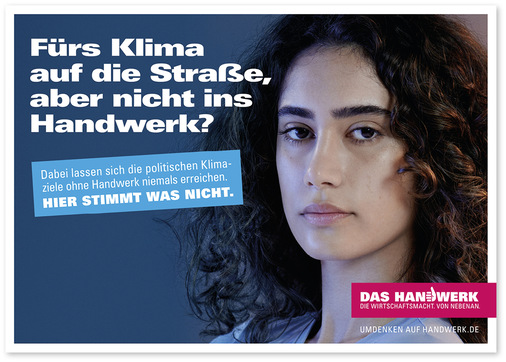 „Für das Klima auf die Straße, aber nicht ins Handwerk?“ – mit zugespitzten Botschaften wie dieser macht das Handwerk im Rahmen einer neuen Plakatkampagne auf einen grundlegenden Widerspruch in der aktuellen gesellschaftlichen Debatte aufmerksam. Denn einerseits engagiert sich gerade auch die Jugend zu Recht sehr für einen klaren Kurswechsel in der Klima- und Energiepolitik. Andererseits werden aber dringend Fachkräfte gesucht, um überhaupt die technischen Grundlagen für eine erfolgreiche Klimawende zu schaffen.