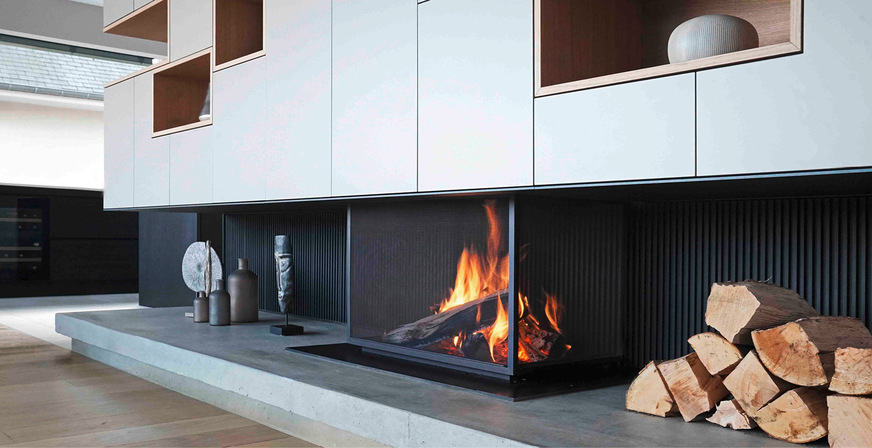 Die technischen Komponenten des Kamins sind unsichtbar in die Konstruktion integriert.«