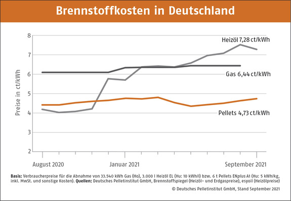 Mit Beginn der Heizperiode im Oktober blieb der Preis für Holzpellets weiterhin niedrig. Laut dem Deutschen Pelletinstitut (DEPI) kostet eine Tonne Holzpellets durchschnittlich 279,26 Euro. Pelletheizer zahlen derzeit 5,59 Cent pro Kilowattstunde klimafreundlicher Wärme. Der Preisvorteil gegenüber Erdgas liegt bei rund 44 Prozent, rd. 41 Prozent sind es gegenüber Heizöl.