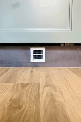 Die Warmluftausströmung von unten ist eines der patentierten Kernmerkmale der „Multifuoco“-Öfen. Sie bewirkt eine gleichmäßige Raumtemperierung.