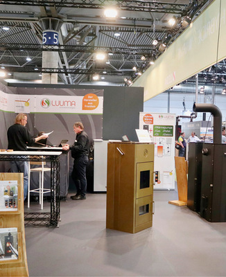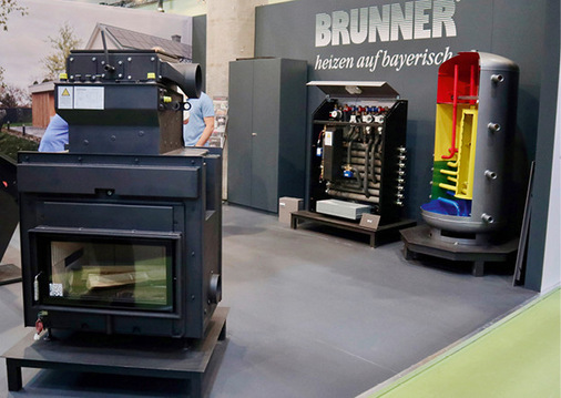 Leutschacher: Die Keramische Werkstätte Leutschacher präsentierte die Vielfalt der in Eigenproduktion hergestellten Keramik für neue wie für historische Kachelöfen. Einen Schwerpunkt stellten dabei neu gestaltete Strukturplatten und eine Kombination aus Elektro-Kachelofen mit einem hohen Anteil an regenerativem Photovoltaik-Strom dar. Diese PV-Speicheröfen weisen ein den klassischen holzbefeuerten Kachelöfen vergleichbares Strahlungswärmeverhalten auf, sie benötigen allerdings keinen Schornstein und eignen sich deshalb besonders für Niedrigstenergie-Neubauten, die ohne Abgaszug geplant wurden, wo sie einen hohen Deckungsanteil am Wärmebedarf bieten.