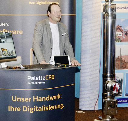 Es geht doch nichts über die Praxis! Das fand auch Hendrik Schütze und baute kurzerhand ein „Büro“ im Saal auf, an dem er live für alle nachverfolgbar eine Verbrennungsluftberechnung demonstrierte. Interessenten bot er ein von ihm selbst entwickeltes Formular-Tool zum Nachweis beim Schornsteinfeger an. Bei Interesse solle man ihm einfach eine Mail schicken, dann würde er dieses gegen eine Handlinggebühr auch im Kollegenkreis weitergeben.